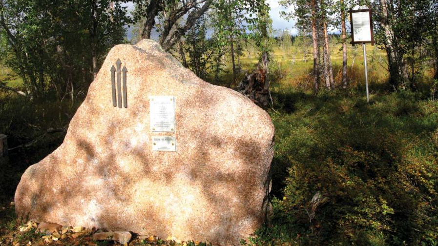 Aapo Järvinen 1/JP4, kaatui Tankavaaran taistelussa tällä paikalla 30.10.1944. SUOMI 80 VUOTTA
