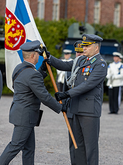 Maavoimien komentaja, kenraaliluutnantti Pasi Välimäki luovutti maanantaina 29. syyskuuta Kaartin jääkärirykmentin joukko-osastolipun eversti Ari Lehmuslehdelle, joka aloittaa Kaartin jääkärirykmentin komentajana 1. lokakuuta 2025.