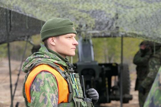 Kokelas Rasmus Mikkonen, 20, toimii yhteisen tulenkäytön tulenjohtajana. Hän suoritti panssarireserviupseerikurssin PSRUK257 Panssarikoulussa ja jatkoi sen jälkeen varusmiespalvelustaan Panssariprikaatissa. Nyt yhteisen tulenkäytön tulenjohtajana hänellä on käytössään muun muassa maalinpaikannuslaite, kiikarit, valonvahvistimet (kiinnitettynä kypärään) ja toki perinteiset muistiinpanovälineet kynä ja muistivihko. Mikkonen on kotoisin Kirkkonummelta ja hän kotiutuu reserviin kesäkuussa 2021 vuoden palvelusajan jälkeen.