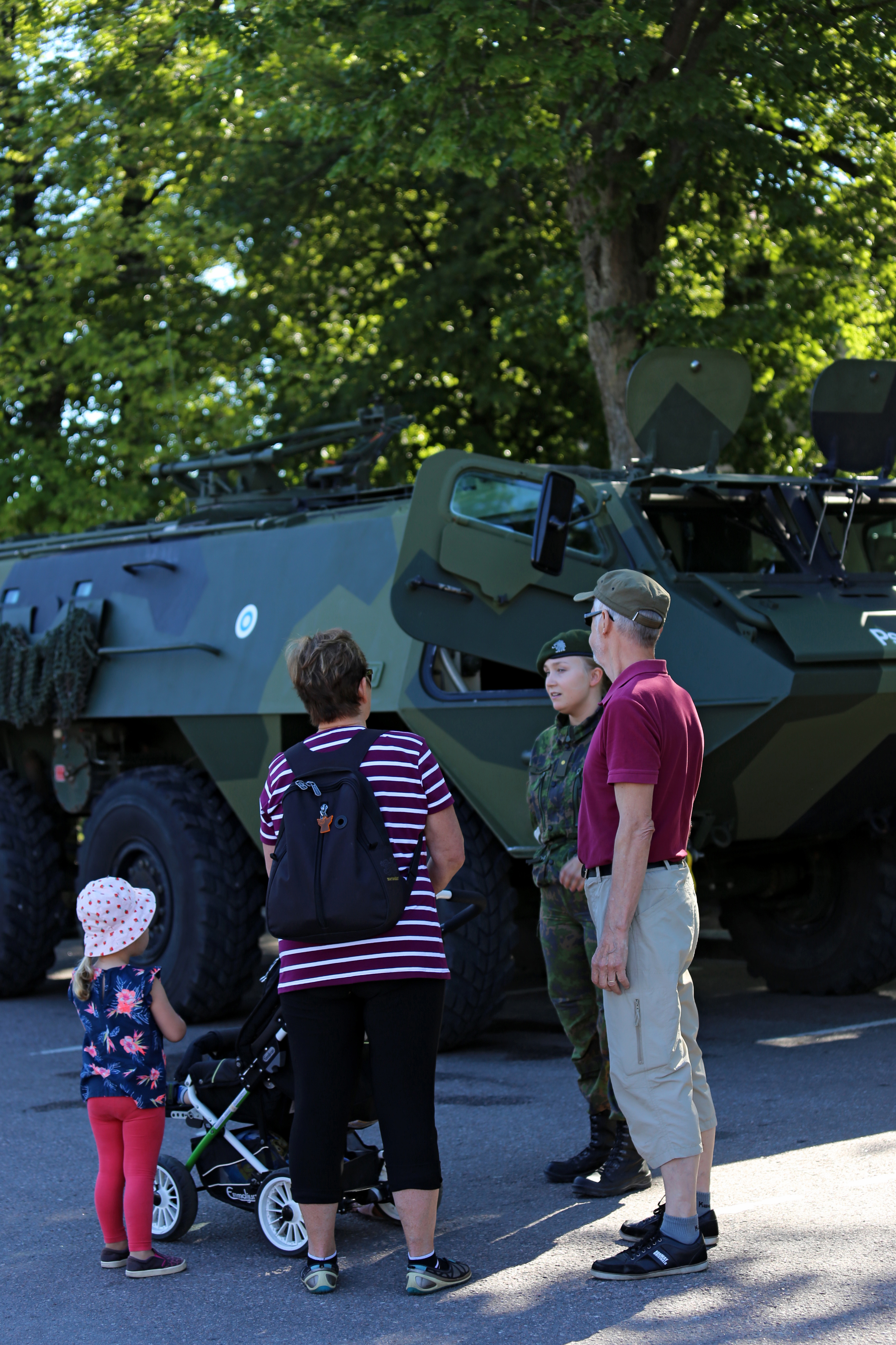 Porvoon torilla järjestetyssä kalustoesittelyssä oli mahdollisuus tutustua muun muassa maastoskootteriin, maastomoottoripyörään, PASI XA-185:een sekä kaupunkijääkärin taisteluvarustukseen. Tilaisuuden yhteydessä oli myös Tuusulan sotilaskotiyhdistyksen myyntipisteet.