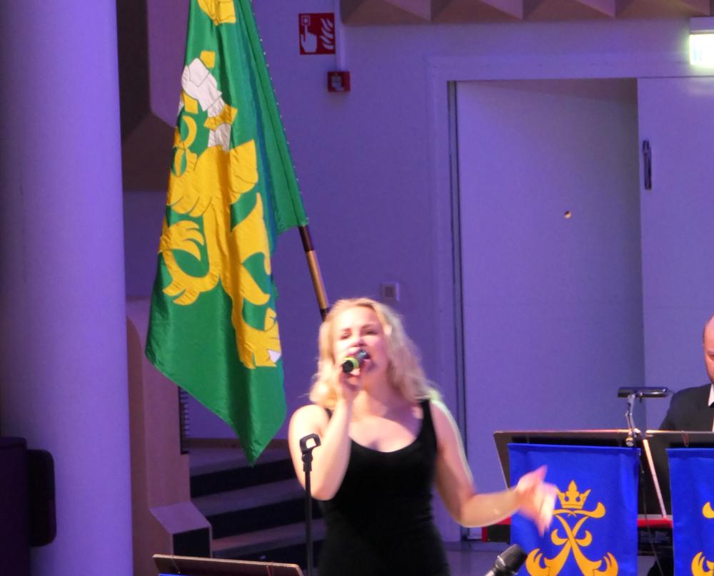 Kuva Maasotakoulun vuosipäivän juhlasta vuonna 2020, jolloin Rakuunasoittokunnan konsertin solistina oli Ilta.
