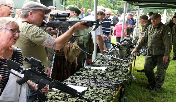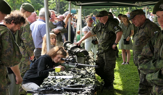 Päivä jatkui ase- ja kalustoesittelyllä Pusupuistossa linnoituksen vieressä. Yleisö sai ostaa Lappeenrannan sotilaskodin myyntiteltasta mm. kahvia ja munkkeja, sekä Lappeenrannan sotilaskodin erikoisuutta eli telamiinamunkkeja, "telluja". Ne ovat munkin ja korvapuustin kaltaisia, kuorrutettuja herkkuja.