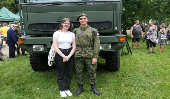 Tuore jääkäri Markus Ridal, 19, Lahdesta tapasi tyttöystävänsä Anna-Sofia Parkkiman, 19, kanssa Pusupuistossa valan jälkeen, ennen valatarkastusta ja lomalle pääsyä.