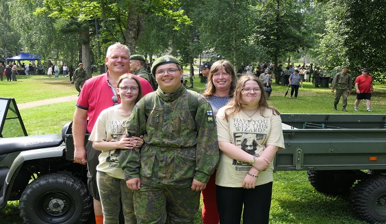 Tuore jääkäri Roope Kelvelä, 19, Luumäeltä tapasi Pusupuistossa perheeensä, eli isä Arin ja sisarukset: Veeti, 14, Riina, 12, ja Janette, 20. Äiti nukkui pois pari vuotta sitten, mutta hänkin varmasti iloitsee "siellä jossain".