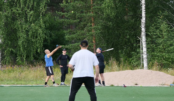 Sotilaallisten juhlamenojen jälkeen koitti rennompi hetki, kun kadetit ja henkilökunta kisasivat lyöntimyllyssä, eli pesäpallon kaltaisessa pelissä.