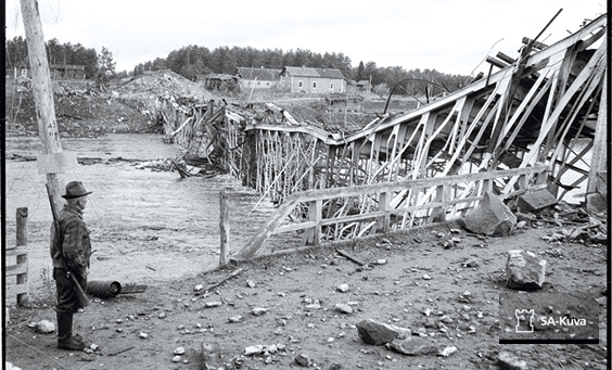 Suomalaiset joukot saavuttivat Kilpisjärven kolmen valtakunnan rajanpyykin huhtikuussa 1945. Joukkojen eteneminen oli ollut hidasta, koska saksalaiset olivat tuhonneet lähes kaiken matkalla. Lapin maantiesilloista oli tuhottu 675 kpl (n. 90 % kaikista silloista) ja tiekatkoksia oli 334. Lisäksi kaikki 24 Lapin maakunnan lossia oli tuhottu.