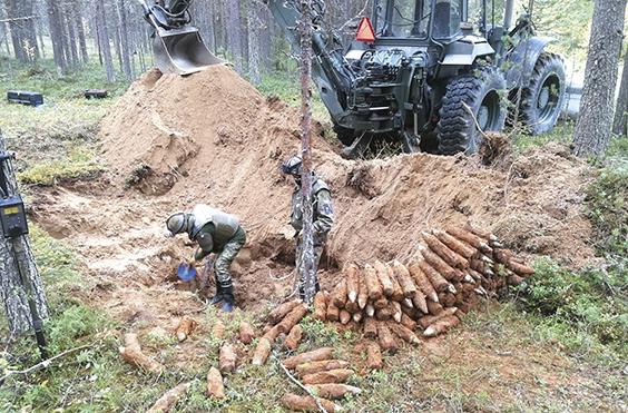 Räjähteiden esiin kaivaminen koneellisesti nopeuttaa raivaamista. Kuva: H Pelkonen