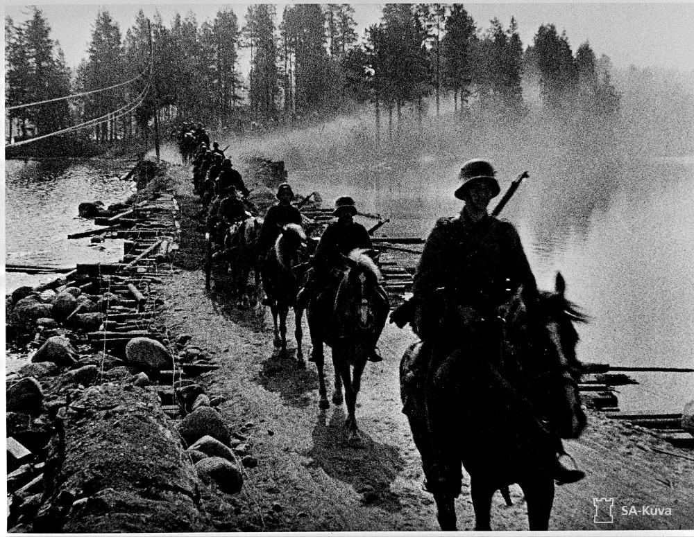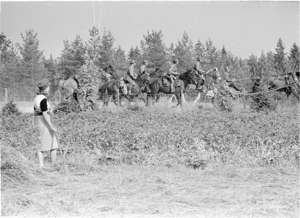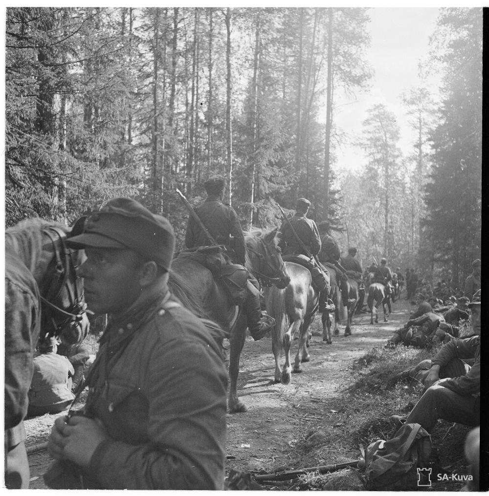 KUVA 1: Hämeen Ratsurykmentti matkalla etulinjaan. Kuva: sotilasvirkailija P. Poutiainen 24.7.1941.