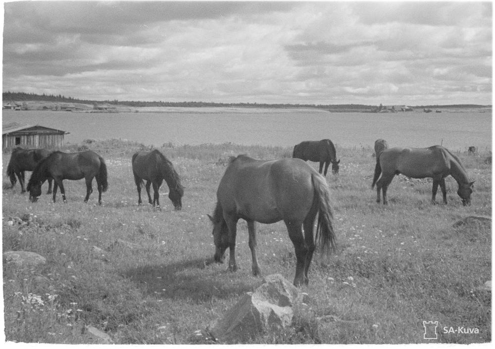 KUVA 22: Ratsuväen hevosia laitumella. Kuva: E. Nurmi 26.7.1942.
