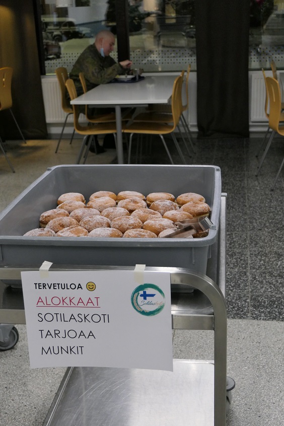 Ruokailut tapahtuvat varuskunnan ruokalassa. Tuoreet alokkaat pääsivät maistamaan päivällisellä myös Haminan sotilaskodin tarjoamia herkkuja. Legendaariset sotkun munkit tulivat tutuiksi heti ensimmäisenä päivänä. Normaalisti sotkun munkki maksaa myös alokkaille, mutta hinta on hyvin kohtuullinen: 0,50 euroa.