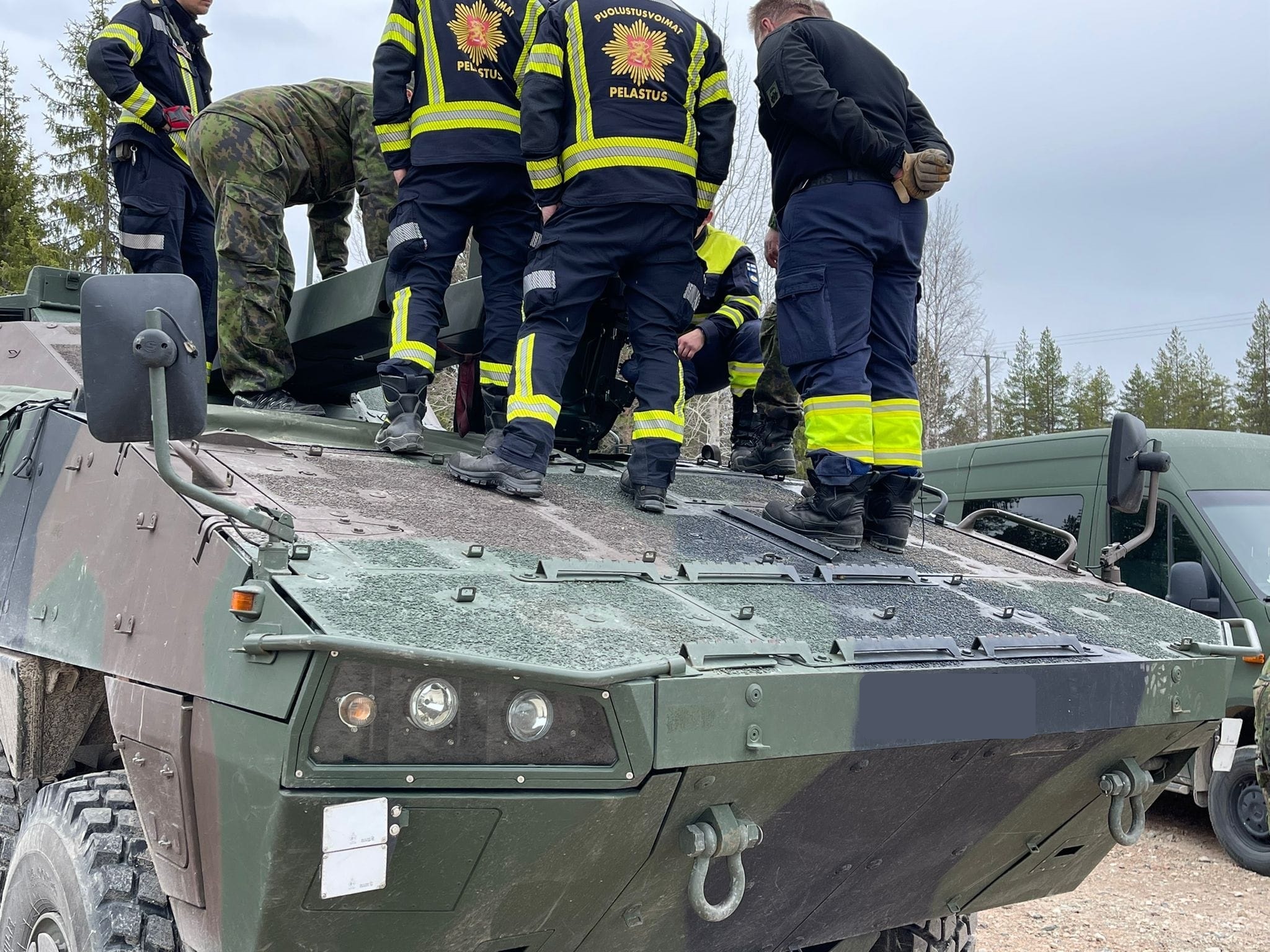 Pelastushenkilöstö tutustuu AMOS-järjestelmään ja K9-panssarihaupitsiin sekä henkilöstön pelastusmahdollisuuksiin niistä.