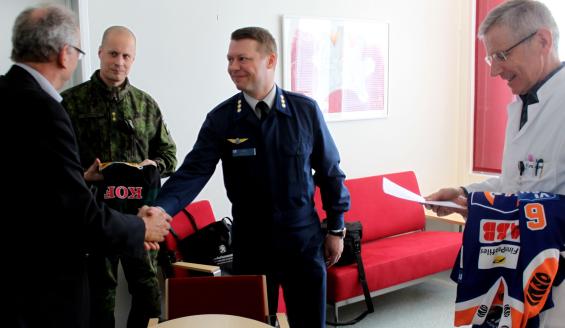 Ilmasotakoulun johtaja eversti Kimmo Hyvärinen luovutti 7.huhtikuuta 2017 pelatun hyväntekeväisyysottelun tuoton Keski-Suomen keskussairaalan lapsipotilaille.