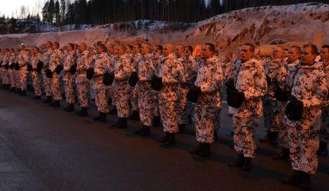 Satakunnan lennoston Suojauskomppanian saapumiserän 1/2025 alokkaat vannovat sotilasvalan Ylöjärvellä Räikän kentällä torstaina 13.2.2025.