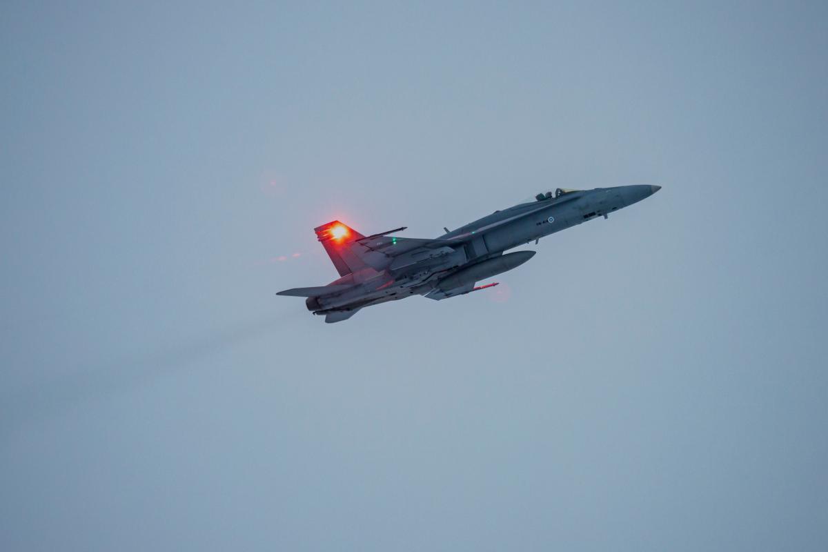 Yölentokoulutuksen yhteydessä käytetään F/A-18 Hornet -monitoimihävittäjien omasuojajärjestelmiin kuuluvia soihtuja, jotka voivat näkyä taivaalla hetkellisesti kirkkaina valoilmiöinä.