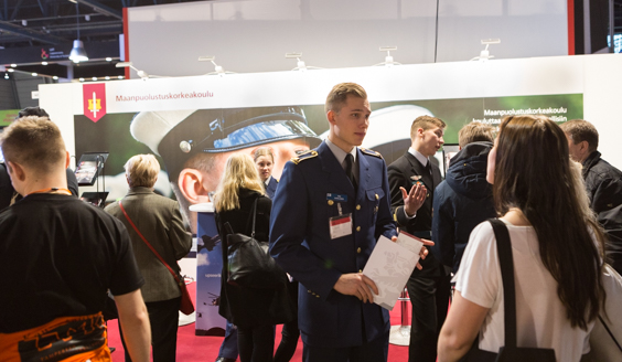 – Kun itse olin hakemassa opiskelemaan, messujen esittelypisteeltä löytyi valintaoppaat ja olennainen tieto opiskelusta, ja se auttoi omassa hakemisessani. Nyt esittelijänä minulta on kyselty paljon valintakriteereistä, miten tänne hakeudutaan, mihin opinnoista valmistutaan ja ennen kaikkea mikä me olemme. Maanpuolustuskorkeakouluun liittyy paljon tietämättömyyttä ja näillä messuilla annamme kiinnostuneille tietoutta tällaisestakin opiskeluvaihtoehdosta, Auvinen kertoo.