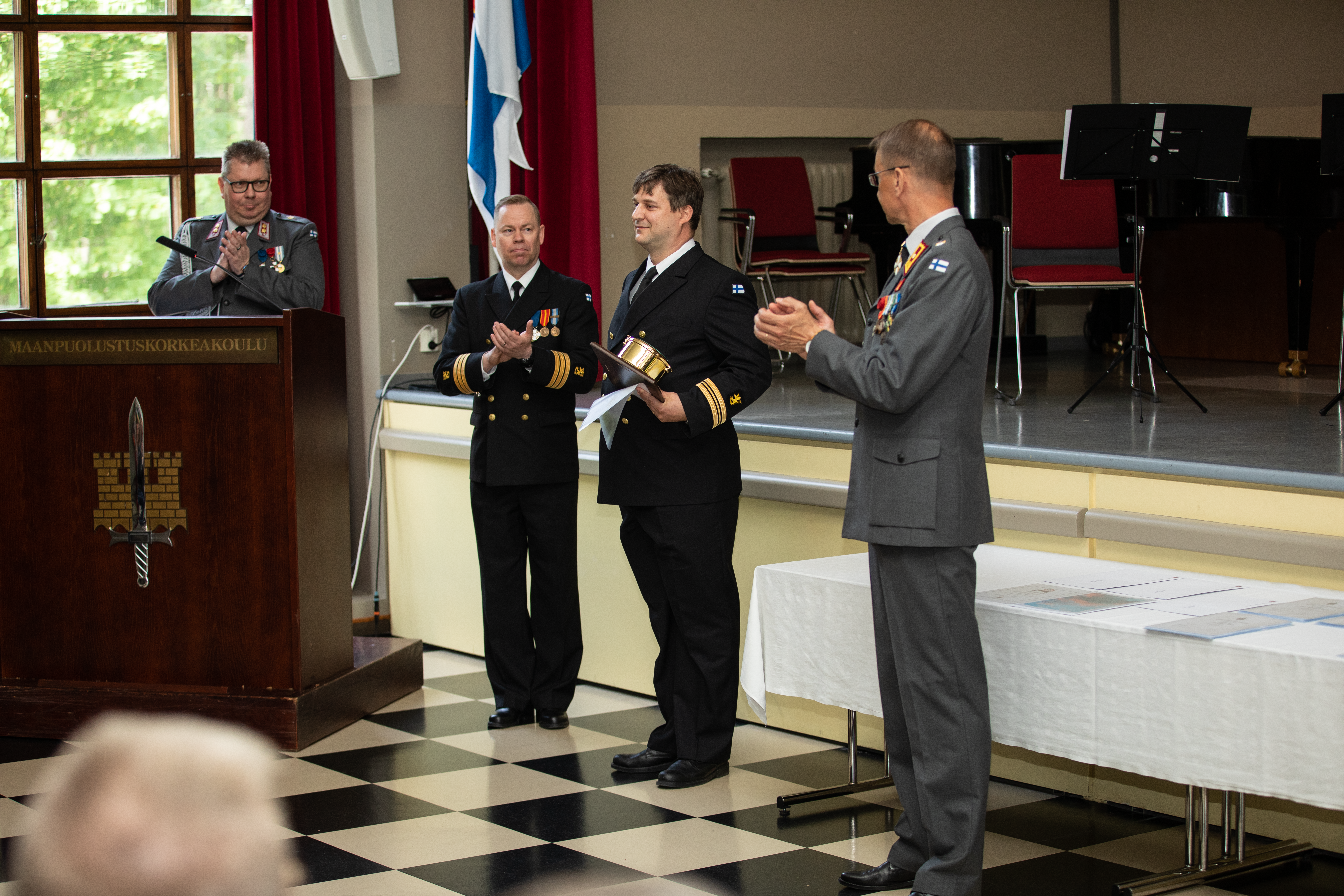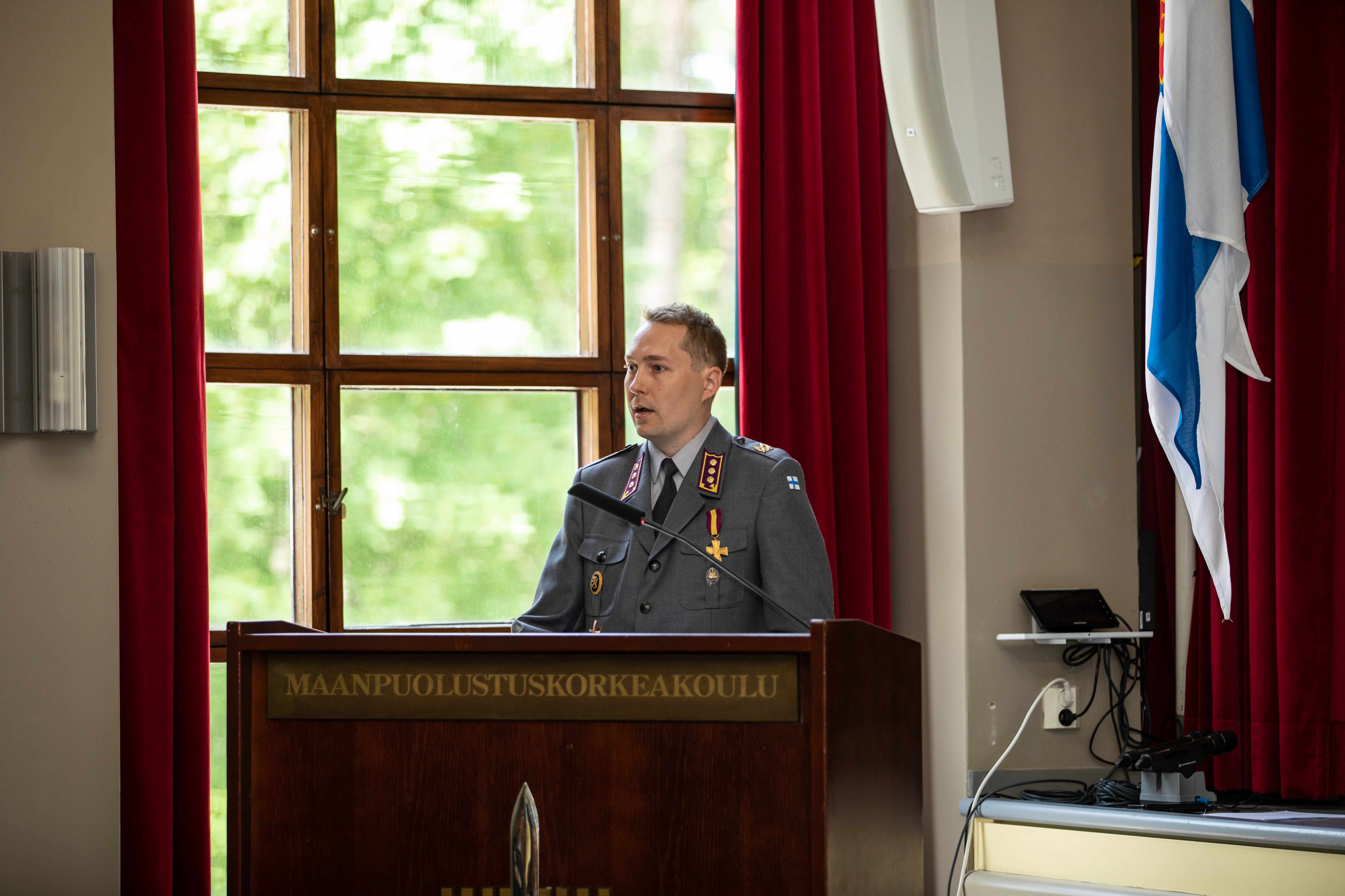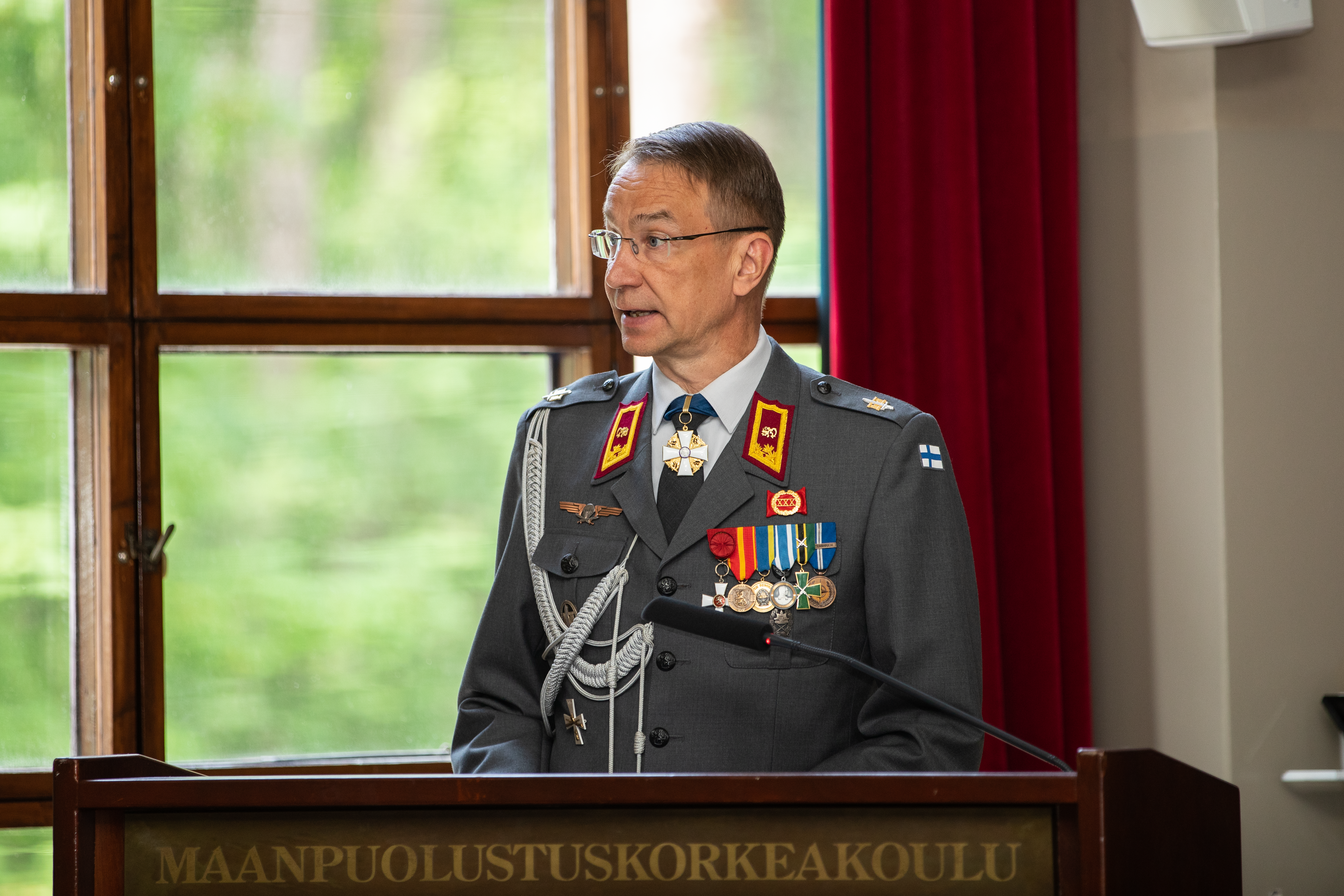 - Erityiskiitokset haluan osoittaa, teille esiupseerikurssilaiset, nuoremmille opiskelijoille antamastanne esimerkistä. Arjessa käytöksenne on antanut kadeteille ja maisterikurssille esimerkkiä. Maanpuolustuskorkeakoulun tehtävänä on upseerikasvatus. Sen ytimessä on eettinen toimintakyky, siis kyky toimia arjessa arvojen, käyttäytymiskoodiston ja pelisääntöjen mukaisesti. Ukrainan sodassa olemme nähneet mitä sodassa karmeimmillaan tarkoittaa se, että sotilaat kaikilla tasoilla eivät käyttäydy sodan oikeussääntöjen ja presidentillisten arvojen mukaisesti. Suomalaisen kadettiupseeriston tehtävänä on varmistaa, että koko Puolustusvoimiin, kenttäarmeija mukaan lukien, juurtuu kansakunnan arvojen mukainen käyttäytymiskoodisto. Siitä me olemme jokainen itse vastuussa, Kalliomaa sanoi.