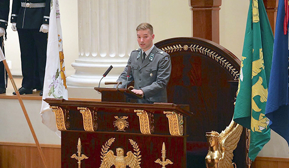 Opiskelijoiden puheen piti luutnantti Otto Kiiski. Kadettikurssin priimuksena palkittu Kiiski korosti puheessaan yhteisöllisyyden merkitystä.