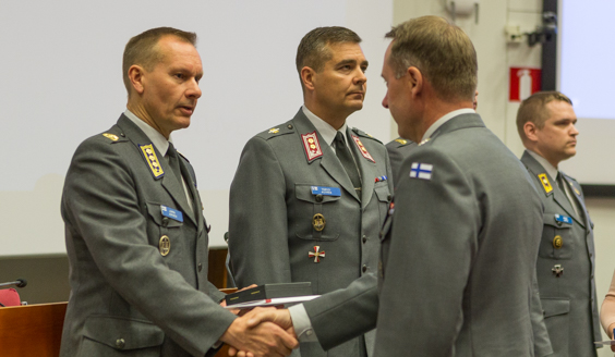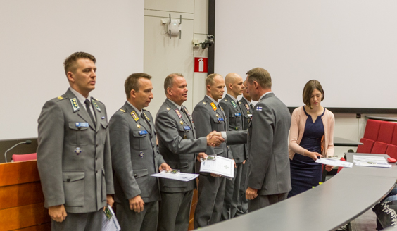 Maanpuolustuskorkeakoululla Tasavallan presidentin myöntämät kunnia- ja ansiomerkit jaettiin seuraaville henkilöille: