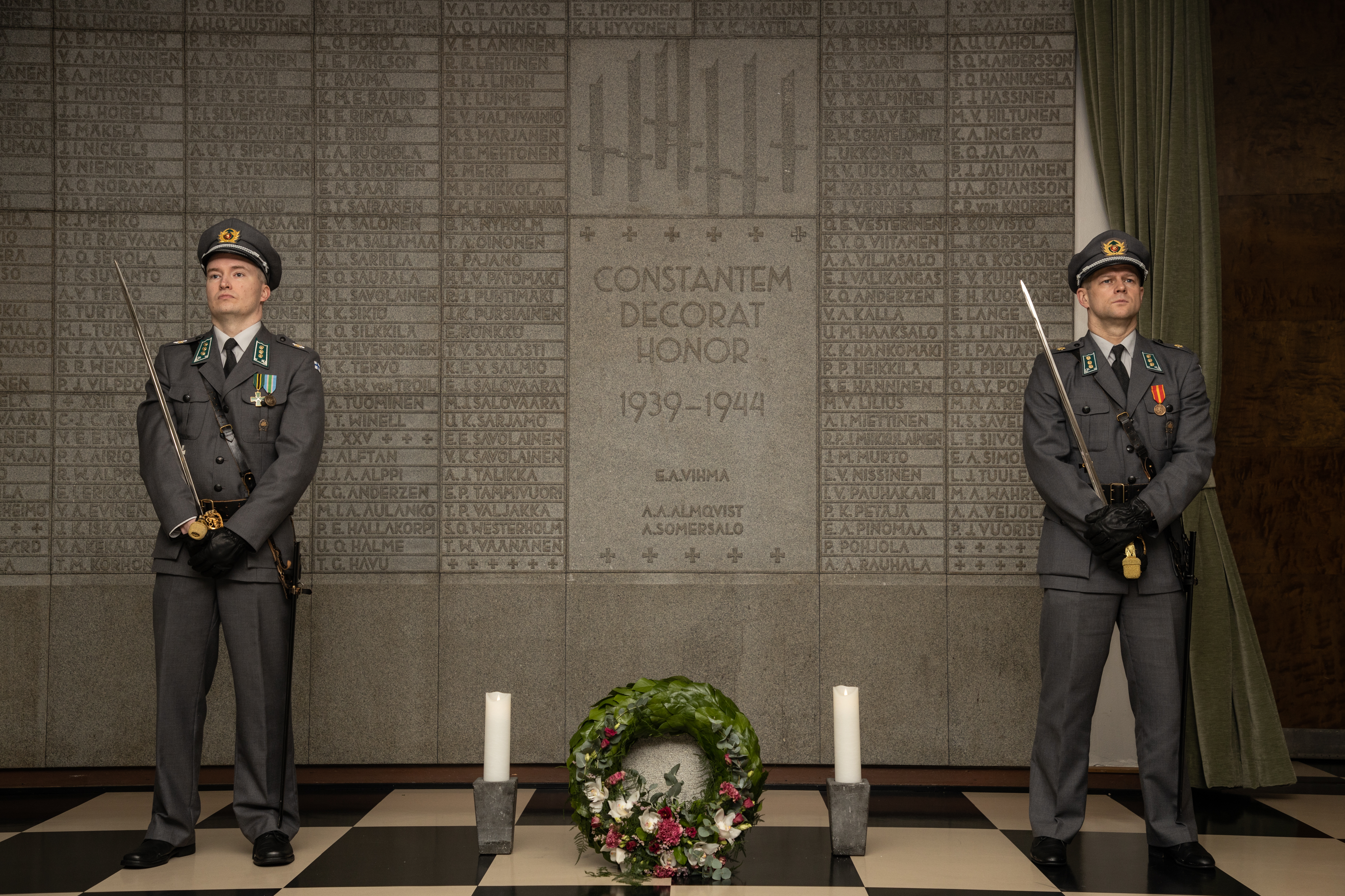 Vuosipäivä aloitettiin perinteisellä seppeleenlaskulla kaatuneiden kadettiupseereiden muistotaululle Sankariaulassa.