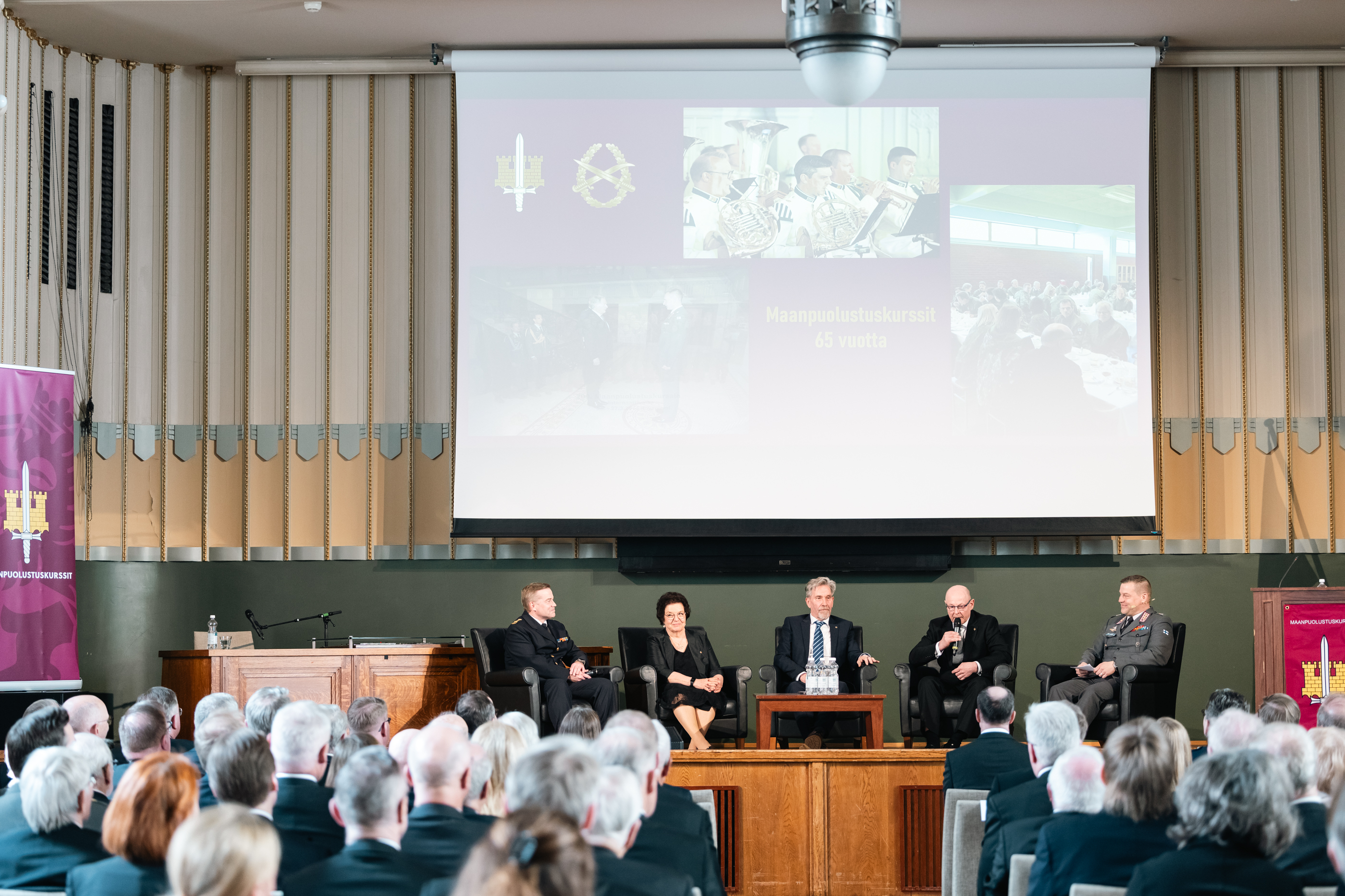 Maanpuolustuskurssien 65-vuotisjuhlatilaisuuden puheissa korostuivat muuttuva ja monialainen turvallisuusympäristö, kokonaisturvallisuus ja suomalaisten maanpuolustustahto. Puheita kuultiin muun muassa puolustusministeri Antti Häkkäseltä ja Puolustusvoimain komentaja, kenraali Janne Jaakkolalta. Paneelikeskustelussa syvennyttiin Maanpuolustuskurssien historiaan 65 vuoden ajalta, kun keskustelijoina toimi mm. kaksi entistä Maanpuolustuskurssien johtajaa sekä pitkään palvellut kurssisihteeri.
