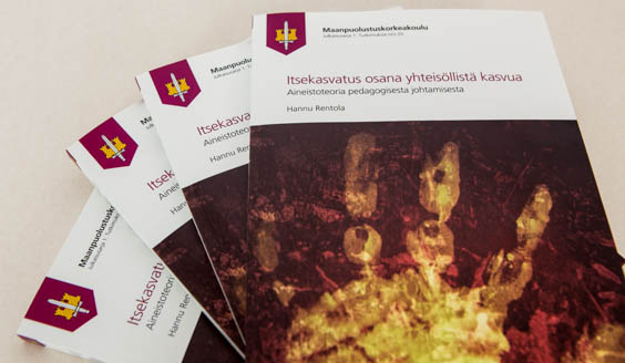 Väitöksen aiheena on Itsekasvatus osana yhteisöllistä kasvua. Aineistoteoria pedagogisesta johtamisesta. Väitöstutkimuksessa tarkastellaan erilaisissa toimintaympäristöissä (Puolustusvoimissa ja sen ulkopuolella) työskentelevien aikuisten opiskelijoiden kokemuksia ja käsityksiä pedagogisesta johtamisesta.