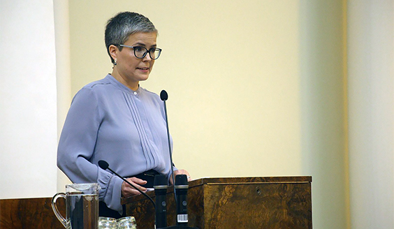Vastavalittu, tehtävässään elokuussa aloittava Venäjän turvallisuuspolitiikan apulaisprofessori Katri Pynnöniemi loi puheessaan yleiskatsauksen Venäjän järjestelmän muutoksen lähtökohtiin, turvallisuuspolitiikkaa koskevan tutkimuksen haasteisiin sekä Pynnöniemen mielestä keskeisiin tutkimuskysymyksiin.