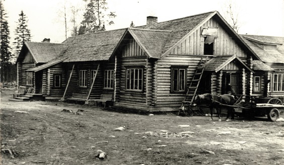The photo features the Main Building of the Artillery School in Suvi-Kumsa, Eastern Karelia, in 1943 – 1944.