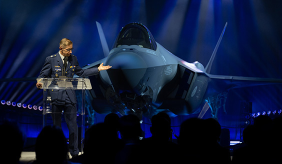 “What a day, what a plane!” the Commander of the Finnish Air Force opened his speech at the rollout ceremony of Finland’s first F-35 on 16 December in Fort Worth, Texas. Photo: Finnish Air Force