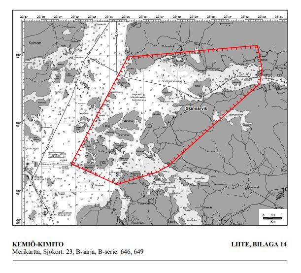 - Karttakuva Kemiön suoja-alueesta merellä.
