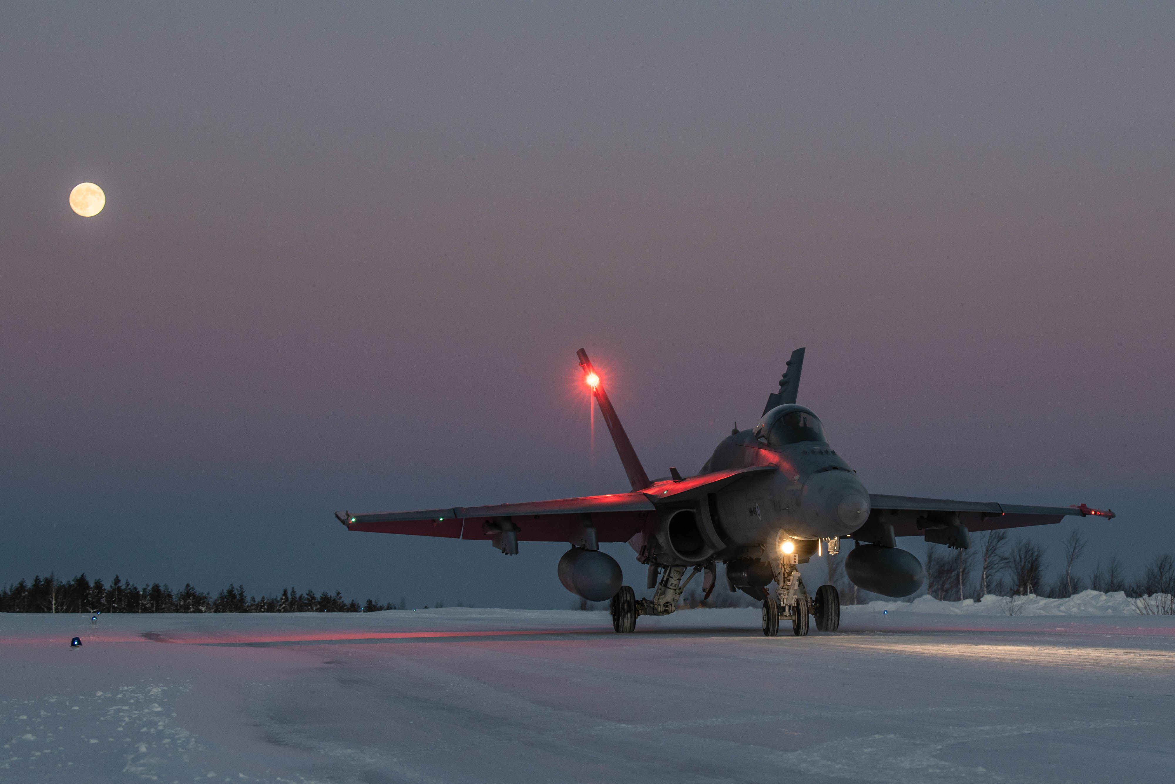 - F/A-18 Hornet -monitoimihävittäjä rullaamassa. Kuva: Ilmavoimat / Anne Torvinen.