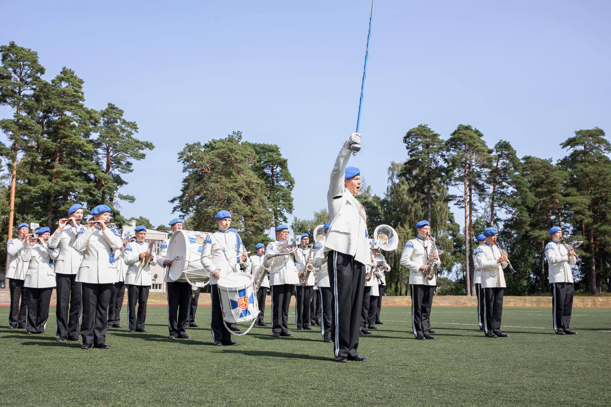 - Vaihtokatselmuksen musiikista vastasi tuttuun tapaan Puolustusvoimien edustussoittokunta, Kaartin soittokunta. Kuva: Puolustusvoimat / Pyry Rantanen