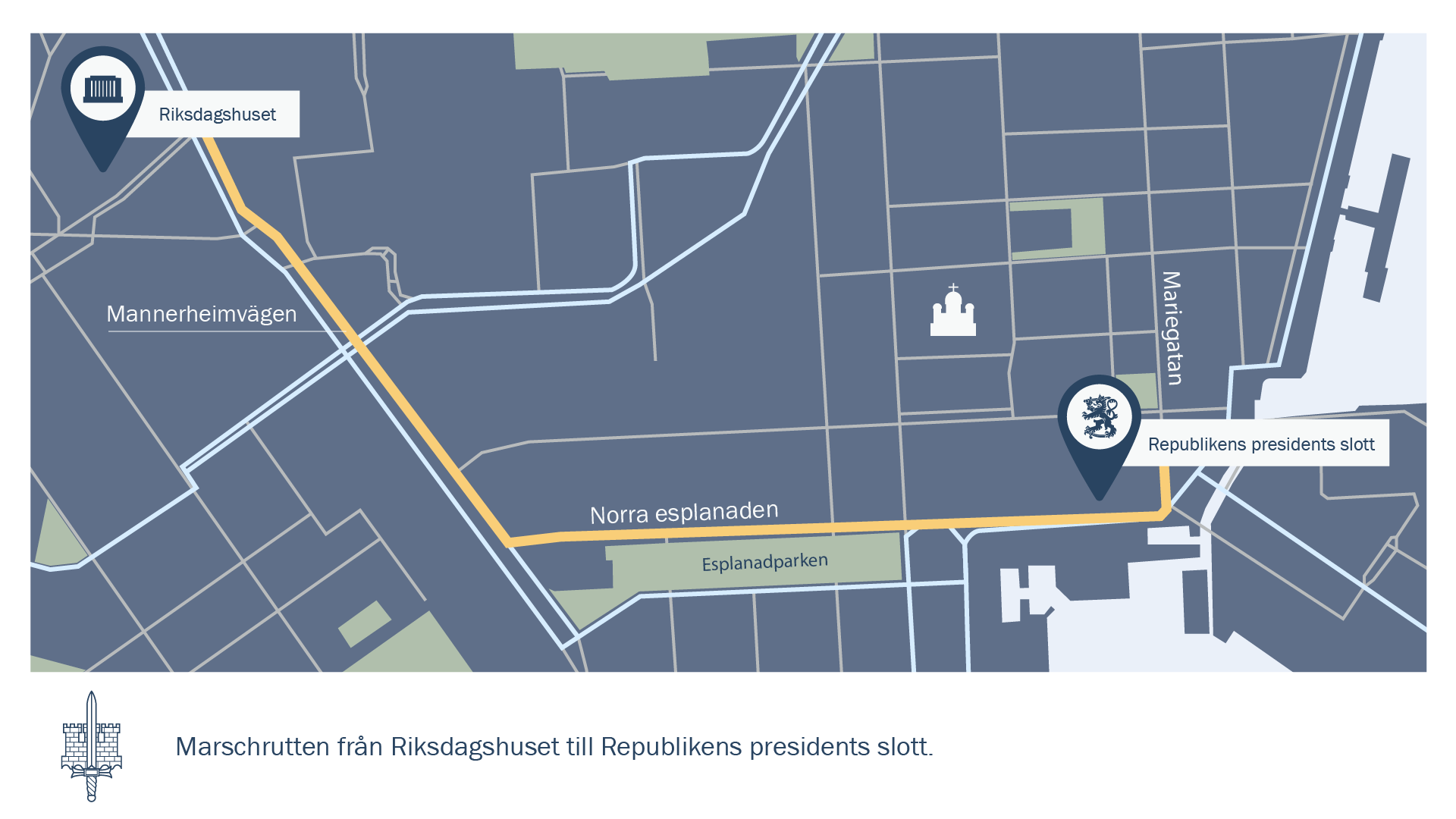 Medborgarna är välkomna att följa kransnedläggningen på Sandudds begravningsplats från och med klockan 8.20 och kadetternas marsch från Riksdagshuset till Presidentslottet från och med klockan 9.10. Ställena där allmänheten kan följa med kransnedläggningen och kadetternas marsch kan ses på de bifogade illustrationskartorna.